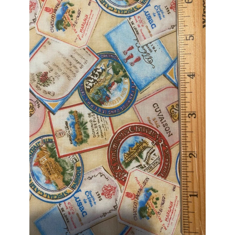 MBT Wine labels on tan 1yd x 44"