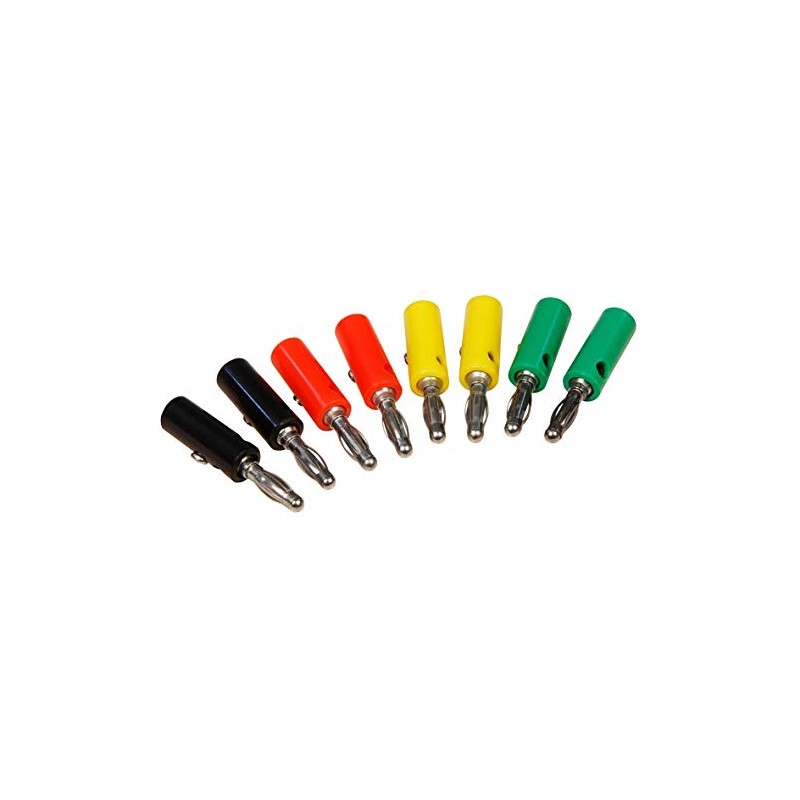MC Power Banana Plug Set, 4 mm, Cross Hole, Compression Spring, 4 Colours, 8-Piece