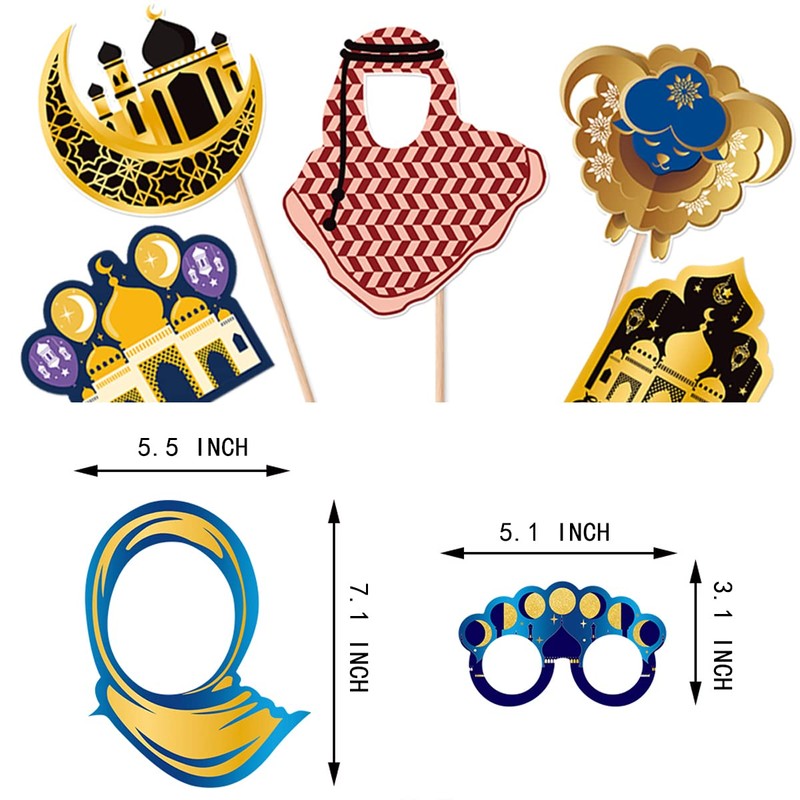 - Material: EID photo booth props are made of high-quality cardstock and printed by high-tech digital machine,showing vibrant colors and unique shapes.