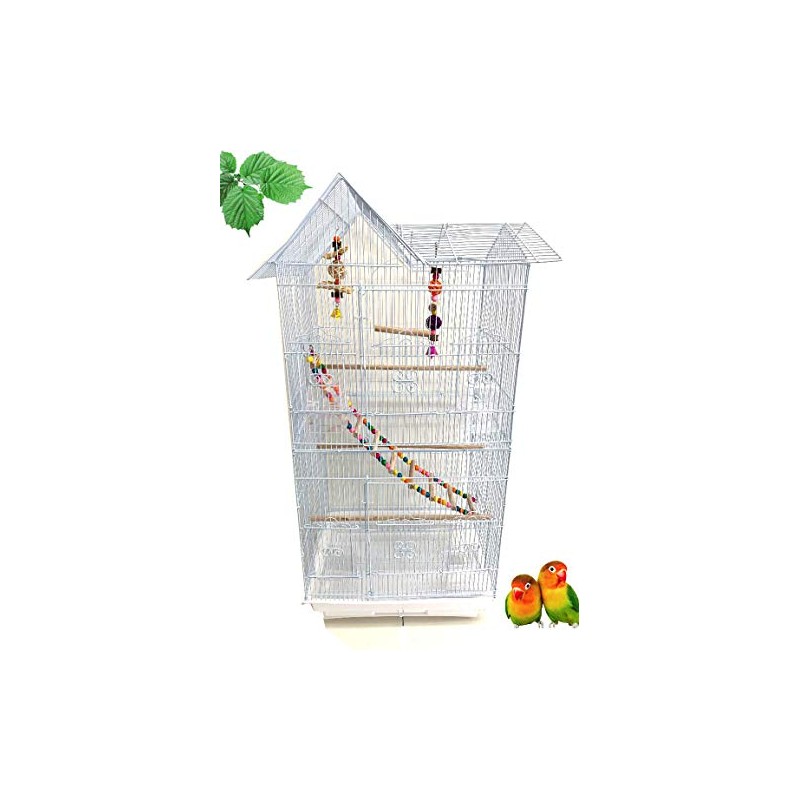 - 【STYLISH AND FUN WITH TOY LADDER AND ROOMY】Gorgeous and Beautiful Double Roof Top Design For Indoor or Outdoor; Large Size: 18"x14"x38"H; With Two FREE Toys and One Long Playing Ladder; With Hanging Swing.