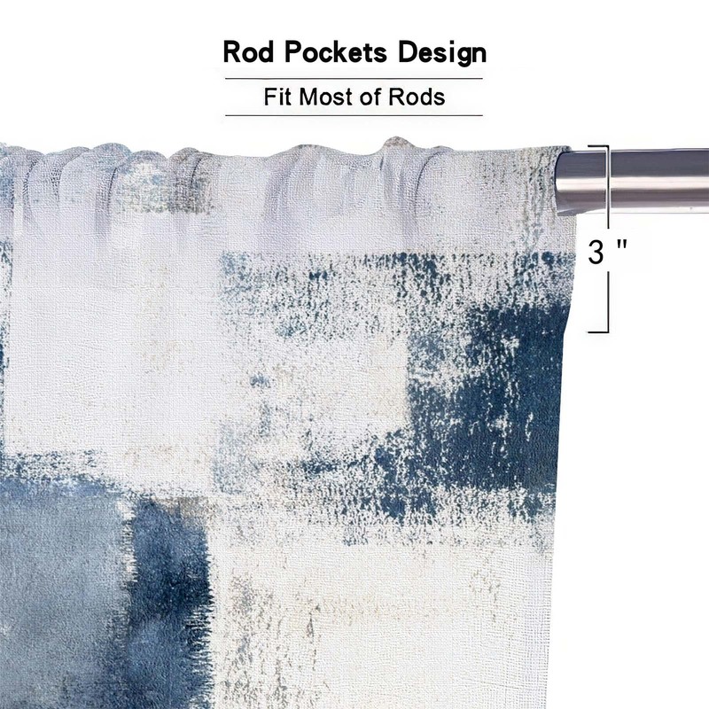 MCALK Blue Kitchen Curtains Tiers and Valances Set 3 Piece for Windows White and Grey Kitchen Window Curtains Set,Modern Abstract Art Valances for Living Room(36" Tiers Set)