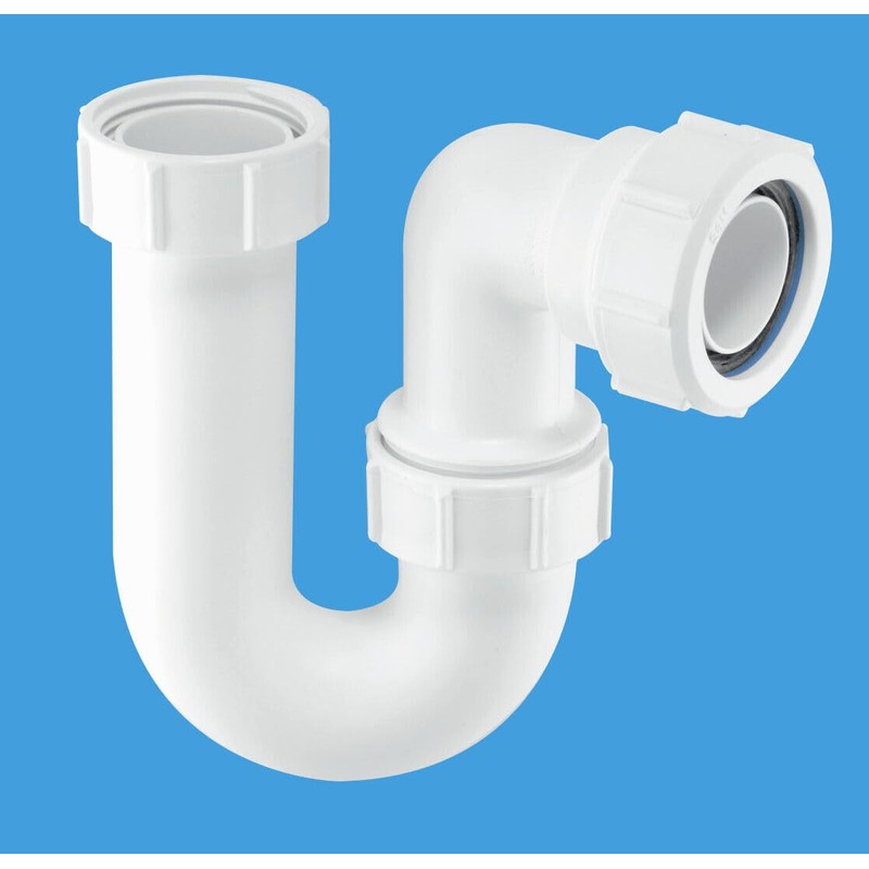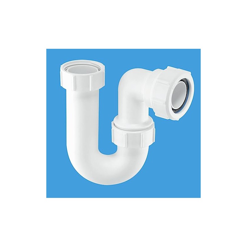 Two versions of McAlpine Tubular Swivel P Trap are available in this section McAlpine Tubular Swivel P Trap with 1 1/4 inch inlet and 75mm Water Seal - Manufacturers Code McAlpine SA10 McAlpine Tubular Swivel P Trap with 1 1/2 inch inlet and 75mm Water Seal - Manufacturers Code McAlpine SC10 Specifications are as follows 75mm Water Seal Fits all 1 1/4"  plastic pipe to BS EN 1451-1-2000 and BS EN 1329-1:2000, metric or imperial copper pipe or lead pipe Incorporates Multifit connection ensuring a secure seal is made between the pipe and fitting wall using the internal multifit and friction washers