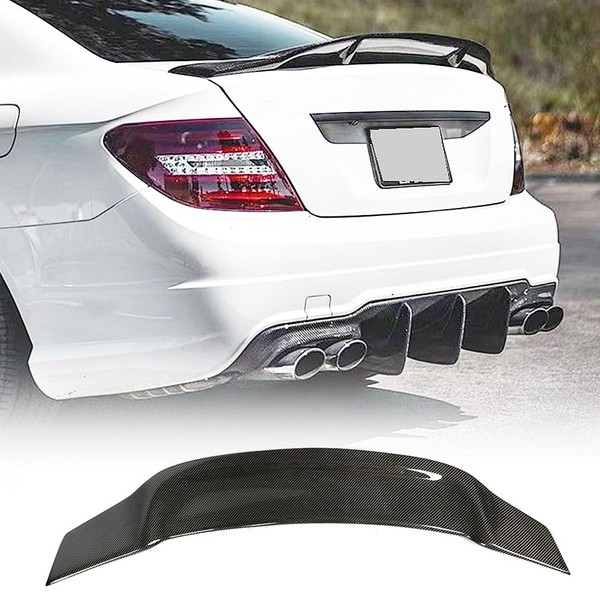 MCARCAR KIT Carbon Fiber Rear Spoiler Compatible with 2008-2014 Benz W204 C-Class Duckbill Trunk Spoiler for C180 C200 C250 C300 C350 C63 AMG Tail Deck Lid Wing Lip