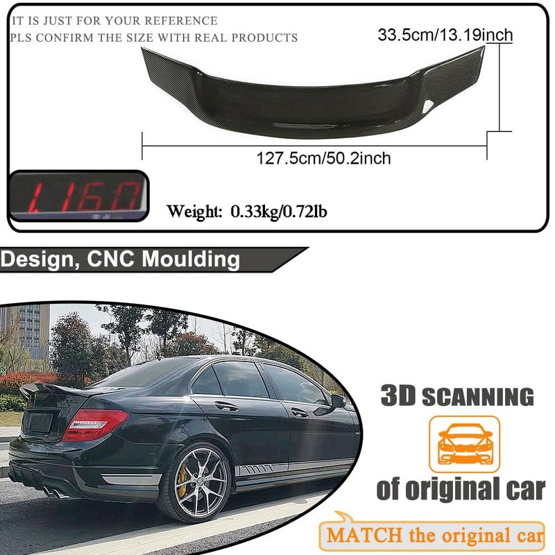 - *Good Fitment: This rear trunk spoiler wing is well fits for Mercedes-Benz C Class W204 C204 C180 C200 C250 C300 C63 Sedan 4-Door 2007 2008 2009 2010 2011 2012 2013 2014. 3D design,CNC moulding,test installation on real cars