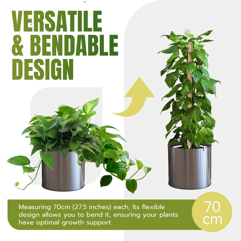 - Versatile & Bendable Design: Measuring 70cm each, this 2-Pack Coir Pole offers an efficient and space-saving solution for supporting climbing plants like Monstera, Pothos, and more. Its flexible design allows you to bend it, ensuring your plants have optimal growth support.