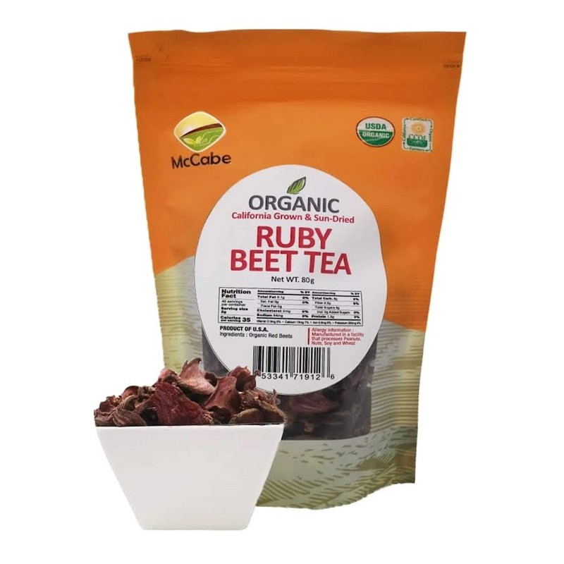 - Organic Sun-Dried Ruby Beet Tea: Savor the natural purity of McCabe Organic Sun-Dried Ruby Beet Tea. It's all-natural, with no harmful ingredients. This high-quality tea comes from Cal-Sundried Organic farms.