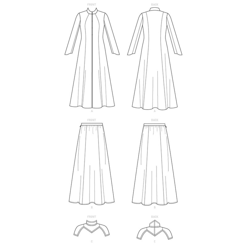 - Includes sewing templates, instructions, fabric recommendations, pattern pieces, and sizing guides for (1) costume coat, (1) costume skirt, and (1) costume capelet.