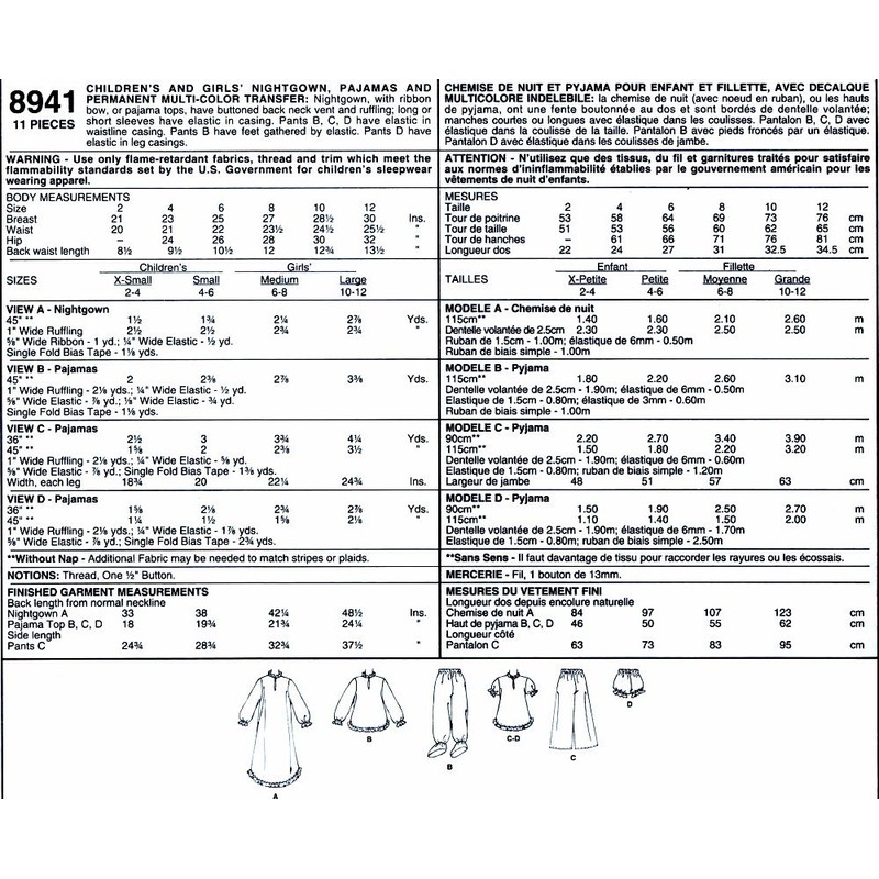 McCall's 8941 Sewing Pattern Nightgown Pajamas Raggedy Ann & Andy Size 10 - 12
