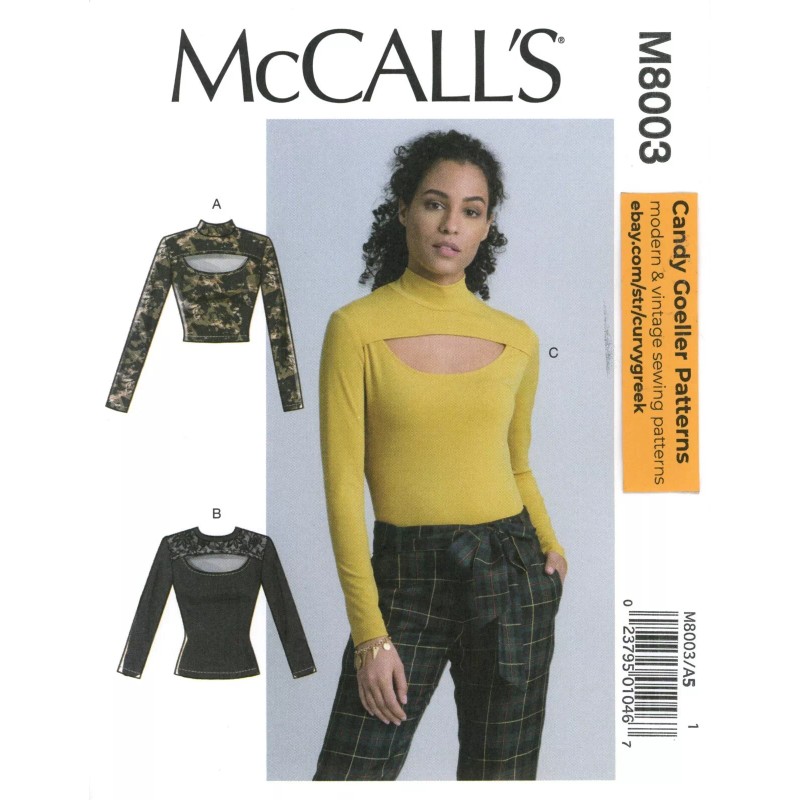 McCall's M8003 Mock Turtleneck Top w Yoke, Cut-Away Neckline Sz 6-14 UNCUT