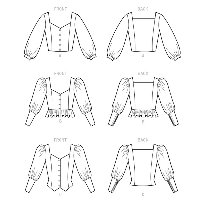 - Women's sewing pattern packet comes with sewing templates, fabric recommendations, pattern pieces, sizing guides, and instructions for (3) tops.