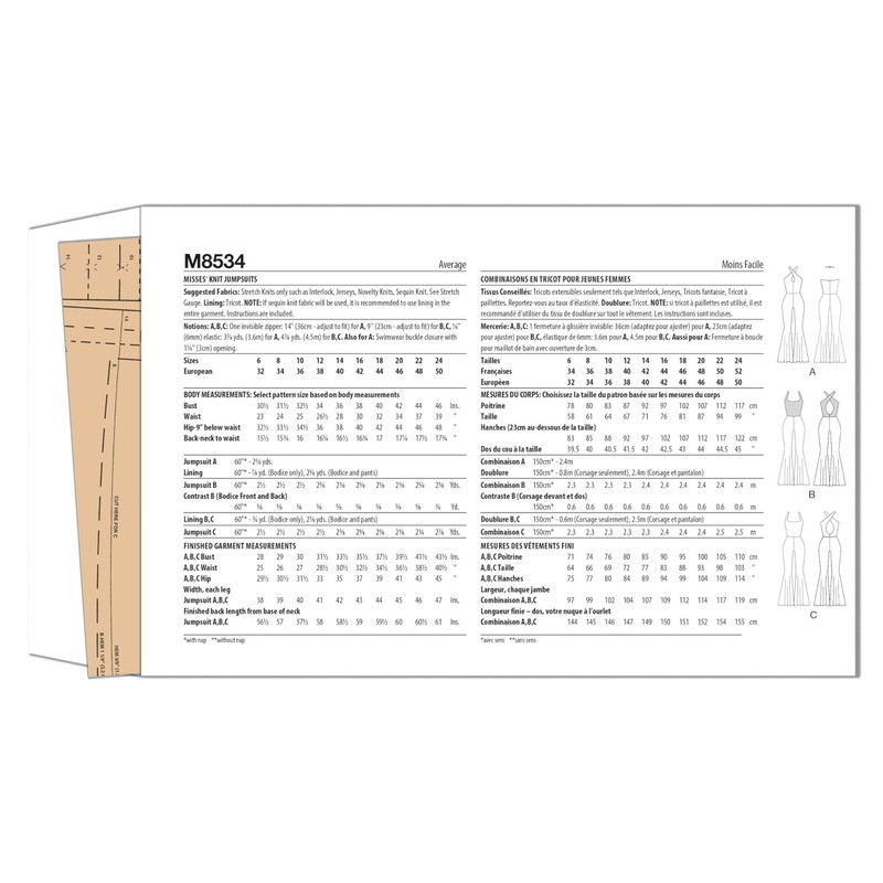 McCall's M8534H5 Misses' Flare Leg Knit Jumpsuits Sewing Pattern Packet, Design Code M8534, Sizes 6-8-10-12-14