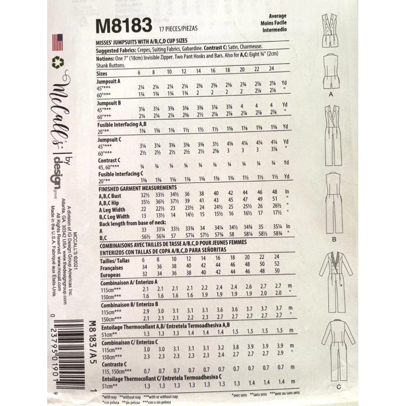 McCall's McCall's Misses' Jumpsuit with A/B/C,D Cup Sizes Pattern M8183 Size 6-14 UNCUT