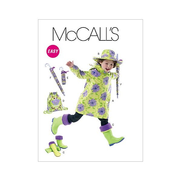 McCall's Patterns M6392 Children's/Girls' Raincoat, Hat, Boot Liners, Backpack and Umbrella Cases, Size Kid [(3-4) (5-6) (7-8)]