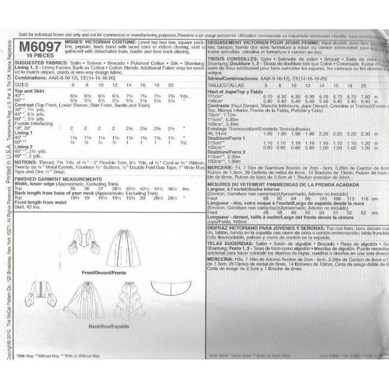 McCall's Victorian Costume Misses size 6-12 McCalls 6097 Sewing Pattern