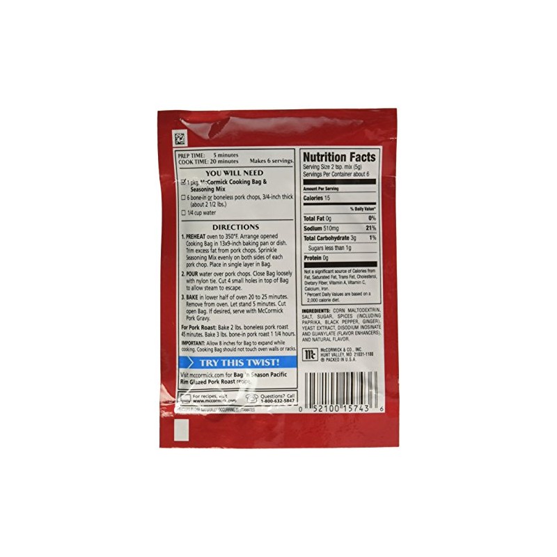 McCormick Bag 'N Season Pork Chops Cooking Bag & Seasoning Mix 1.06 oz (Pack of 6)