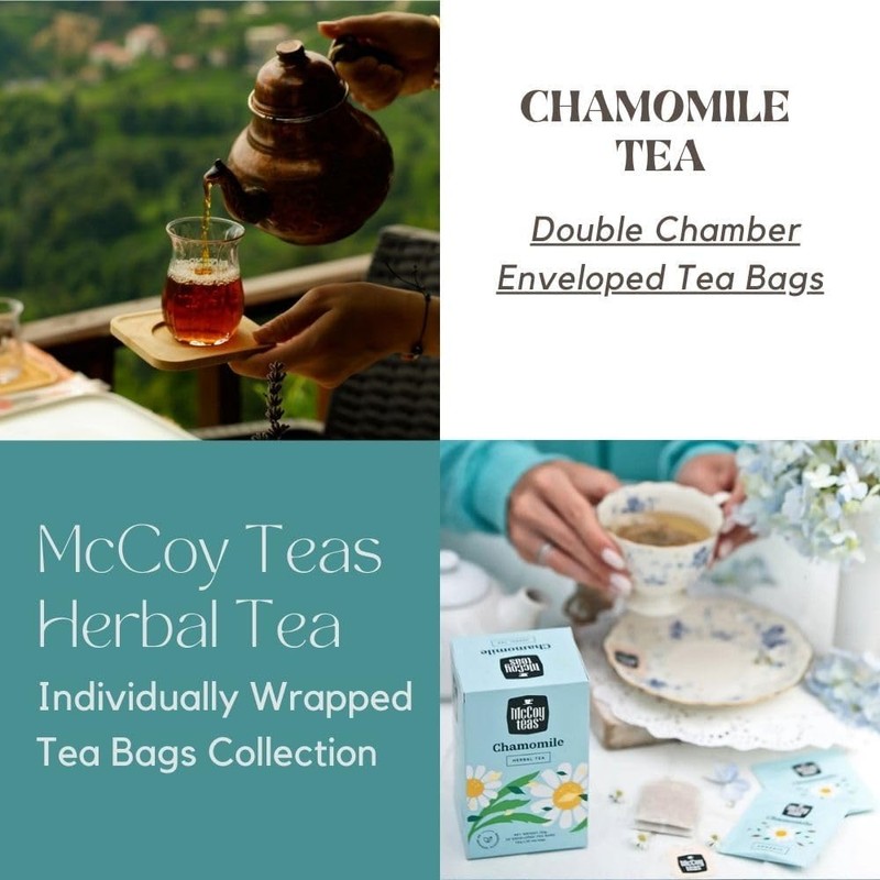 McCoy Teas Chamomile Tea Bags Individually Wrapped Collection Herbal Tea with Premium Tea from Sri Lanka, 20 Enveloped Double Chamber (Pack of 01)