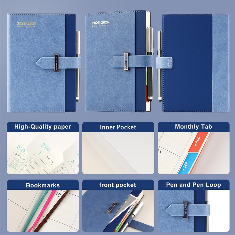 - PREMIUM DESIGN - Premium leather-look cover with secure metal clasp closure, offering both style and durability. the premium 80GSM acid-free ivory thick paper, reduce ink bleed,makes it silky smooth to write on bringing you the ultimate writing experience, diary planner Organiser 25-26 for Office, Personal and Home -Daily.