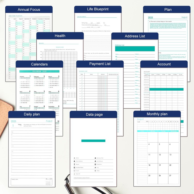- Practical functions - | Personal Data | 2025 2026 calendar | year planner 2025 2026 | Health| |Account |Payment List |Address List |Graph Grid Paper | Coloured Monthly Tabs13 Monthly Planner with to do | metal clasp closured |Inner Pocket |Pen &Pen Holder |3Bookmarkss | 80Gsm ivory Premium paper|8.3 x 5.9 inches|