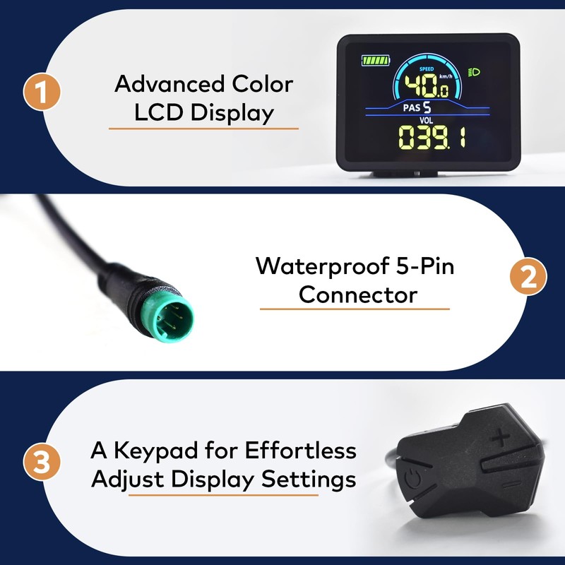 - [Immersive Riding Experience]: Transform your electric bike journeys into thrilling adventures with our advanced ebike LCD display. Stay informed and engaged with real-time data and insights right at your fingertips
