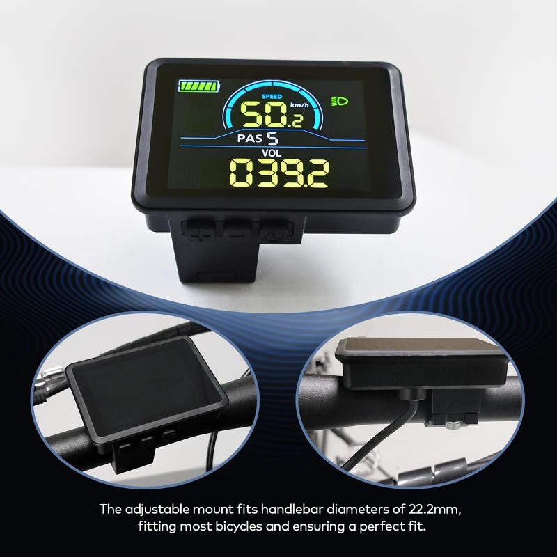 - [Effortless Installation]: With our user-friendly design and included 5-pin waterproof cable (JL-F-Z509AG), cable length exposed: 150mm, installing the ebike LCD display is a breeze. The bracket fits handlebar sizes of 22.2mm