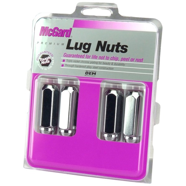 Chrome plated lug nuts lead a tough life. Think about it, harsh elements, nasty corrosive wheel cleaners and lead-foot drivers. Not to mention overzealous impact guns and loose fitting lug wrenches. This kind of treatment destroys ordinary lug nuts which turns even the best looking wheels ugly. Tough Nuts can take the punishment and keep your wheels looking beautiful. Tough Nuts are guaranteed for life not to rust, chip or peel. McGard manufactures lug nuts in the USA to meet or exceed OEM standards for safety and durability. Every lug nut is fully machined from restricted chemistry steel made specifically for McGard and through-hardened for its unsurpassed level of safety. McGard’s plating process includes three layers of nickel and one layer of microporous chrome producing a superior finish while protecting against rust. Tough Nuts are designed and built for the real world, because life is tough. For use with steel or aluminum wheels with exposed decorative lug nuts that are tapered at the bottom. This product may contain globally sourced materials/components.