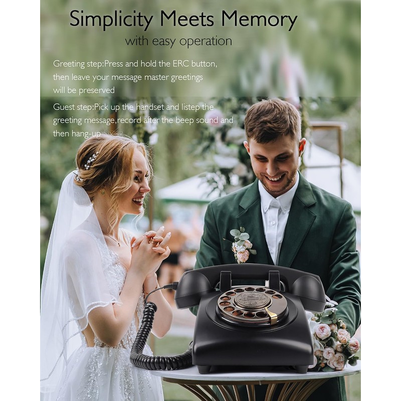 • VINTAGE PHONE DESIGN: Turn back the clock with our beautifully crafted recorded guestbook wedding phone. Time flies, but this wedding guestbook makes timeless sounds and memories.
