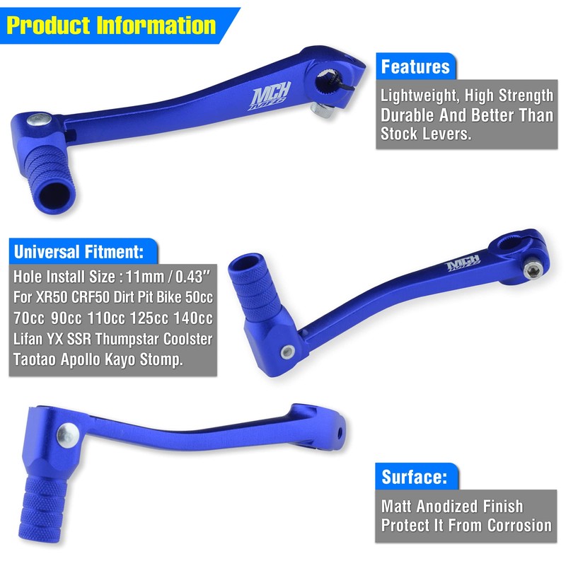MCHMFG Folding Gear Shifter Shift Lever CNC Aluminum Gear Shifter Shift Lever for XR50 XR80 CRF50 CRF70 50cc-125cc Pit Dirt Bike Motorcycle (Blue)