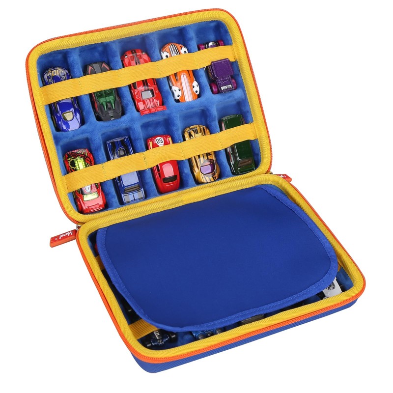 Mchoi Shockproof Carrying Case for Hot Wheels 20 Cars, Case Only (Blue, Yellow, Orange Zipper)
