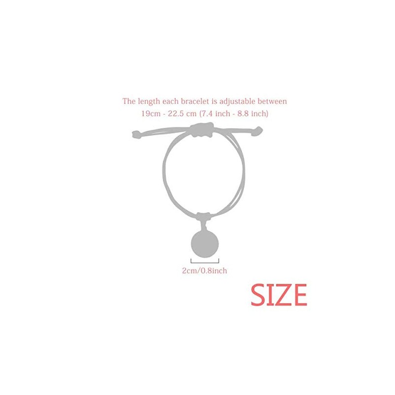 - Size: The size of pendant is 2 cm (0.8 inch) in diameter. The length each bracelet is adjustable between 19cm - 22.5 cm (7.4 inch - 8.8 inch)