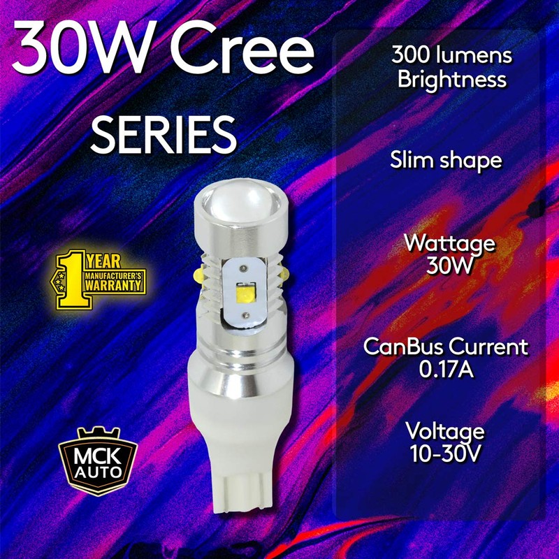 This T15/194/W16W LED bulb has an output wattage of 30W, the maximum available in the T15/194/W16W range.