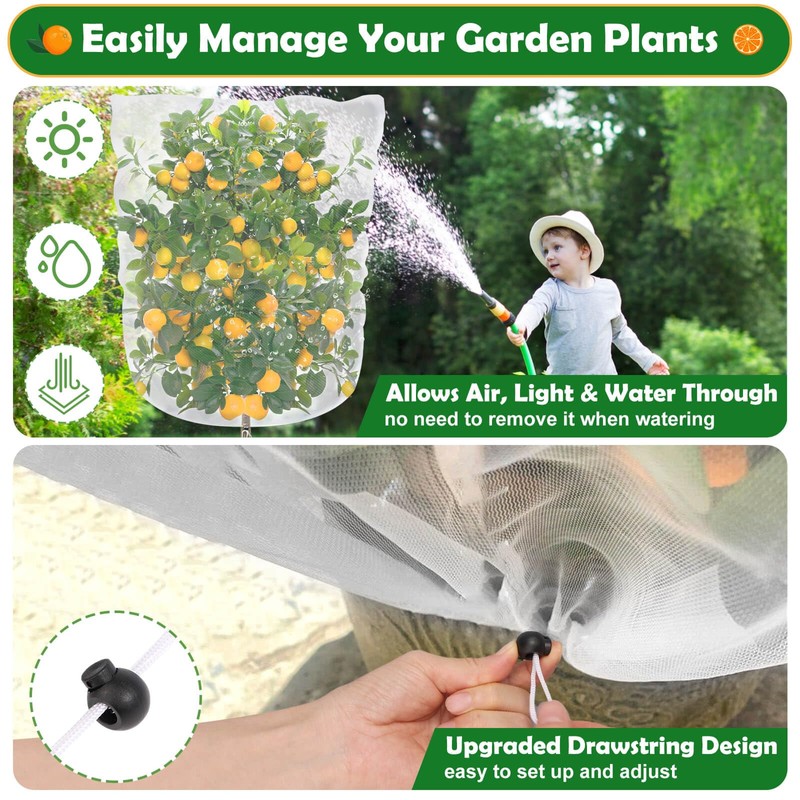 • 【Garden Protection】Our fruit tree netting with drawstring is suitable for vegetable fruit trees such as fruit trees, vegetables, flowers, herbs, cucumbers, tomatoes, peppers, cucumbers, carrots and bananas. It can be used in gardens, orchards, greenhouses and other places, it can be very good for you to protect fruits and flowers from small animals, meanwhile, improve the quality of fruit.