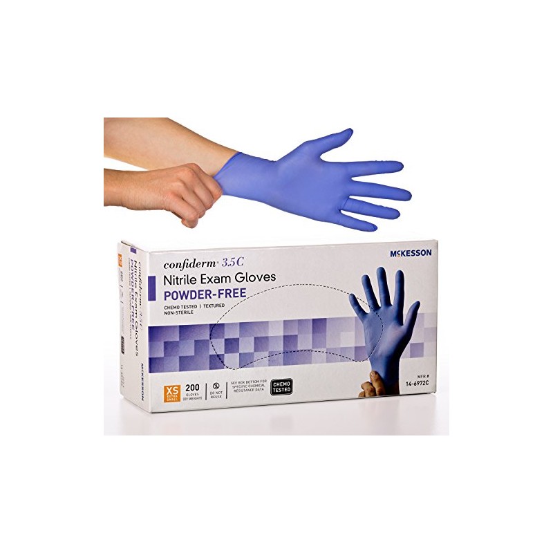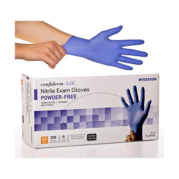 McKesson Confiderm 3.5C Nitrile Latex-Free XSM Exam Gloves, X-Small, Chemo Tested, Powder-Free, 200/BX