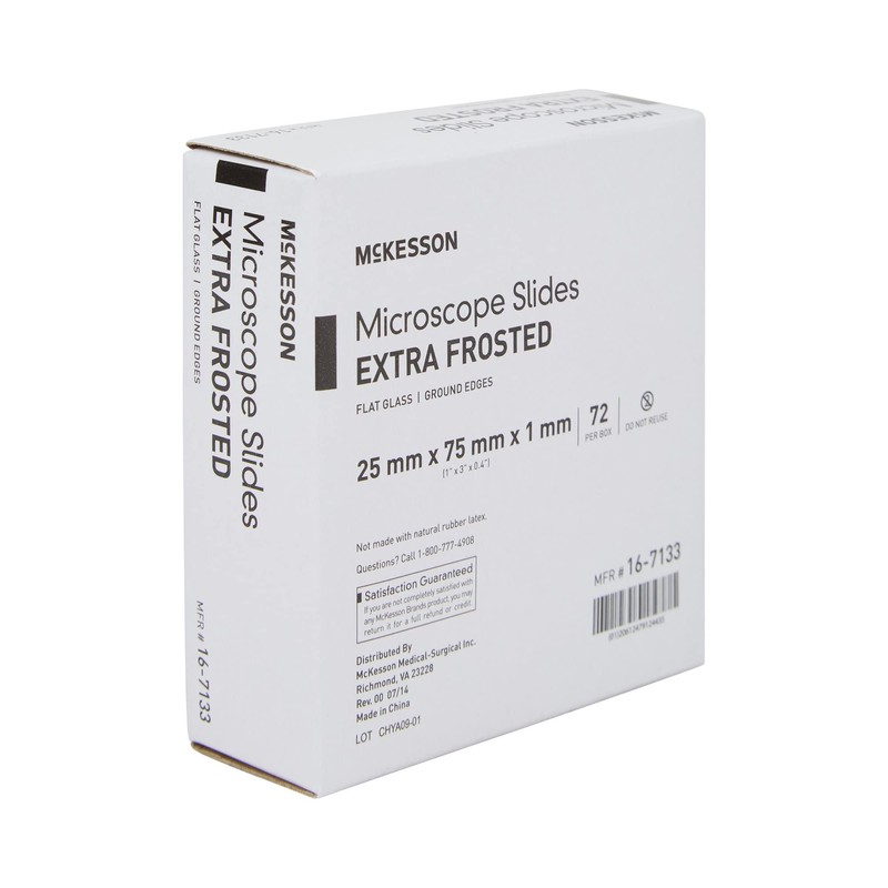 McKesson Microscope Slides, Extra-Frosted, Flat Glass, Ground Edges, 25 mm x 75 mm x 1 mm, 1440 Count