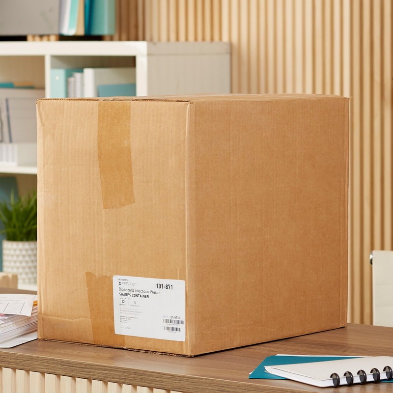 McKesson Sharps Container, Stackable, Locking Lid, Red, 3 gal, 12 in x 6 in x 13.5 in (L x D x H), 12 Count