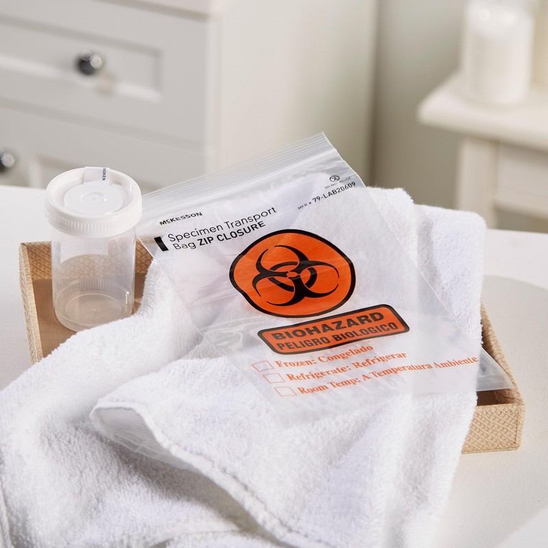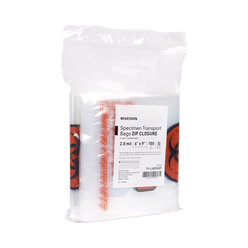- Gather stool, urine, sputum or blood samples with McKesson specimen transport bag. Bag measures 6 x 9 inch