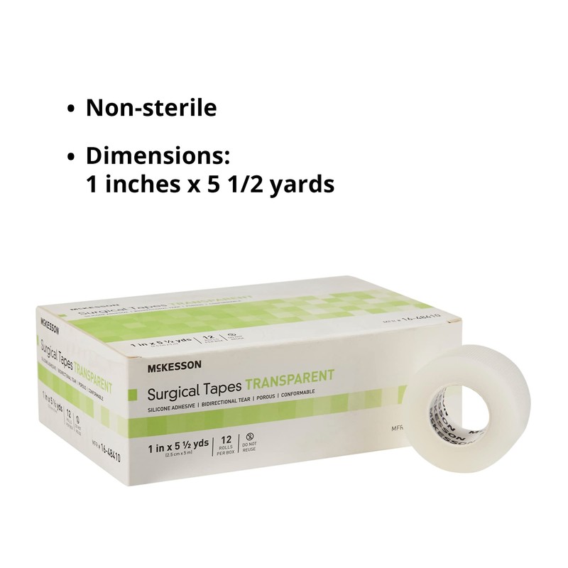 McKesson Surgical Tape, Non-Sterile, Transparent Plastic/Silicone, 1 in x 5 1/2 yd, 12 Rolls, 1 Pack