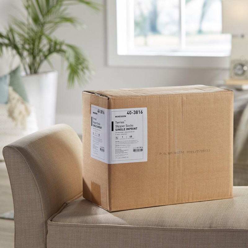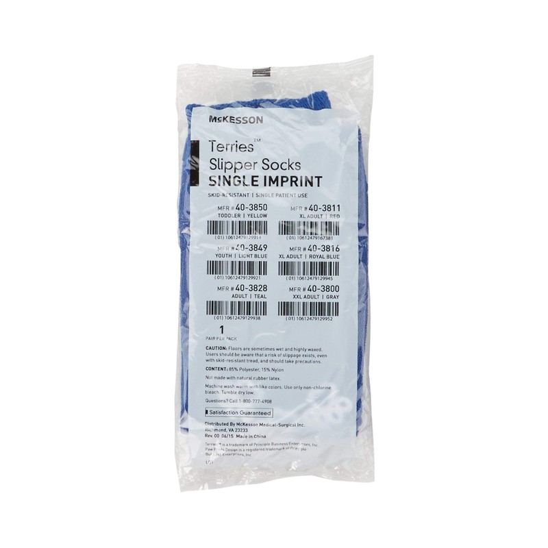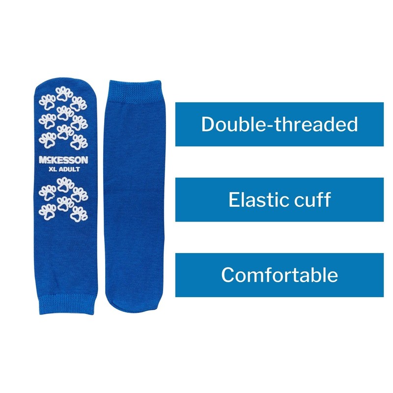 McKesson Terries Slipper Socks [48 Pairs], Non Slip Grip Hospital Socks, Size XL, Adult Shoe Size 7.5 to 10, Grippy Slipper for Men & Women, Royal Blue, Single Tread, Soft and Breathable