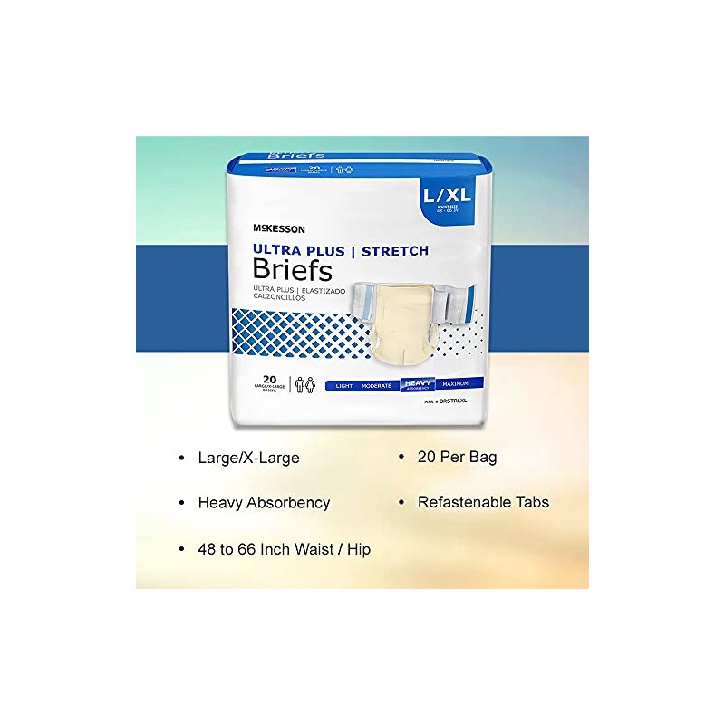 - McKesson Ultra Plus Stretch adult incontinence briefs help users manage heavy incontinence; for men or women