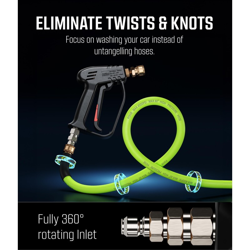 •  Lightweight Pull Trigger: Hold the pressure washer gun for long durations without getting tired. The snub nose design makes it easy to maneuver with just one hand. The short gun design is very convenient for use with a foam cannon.