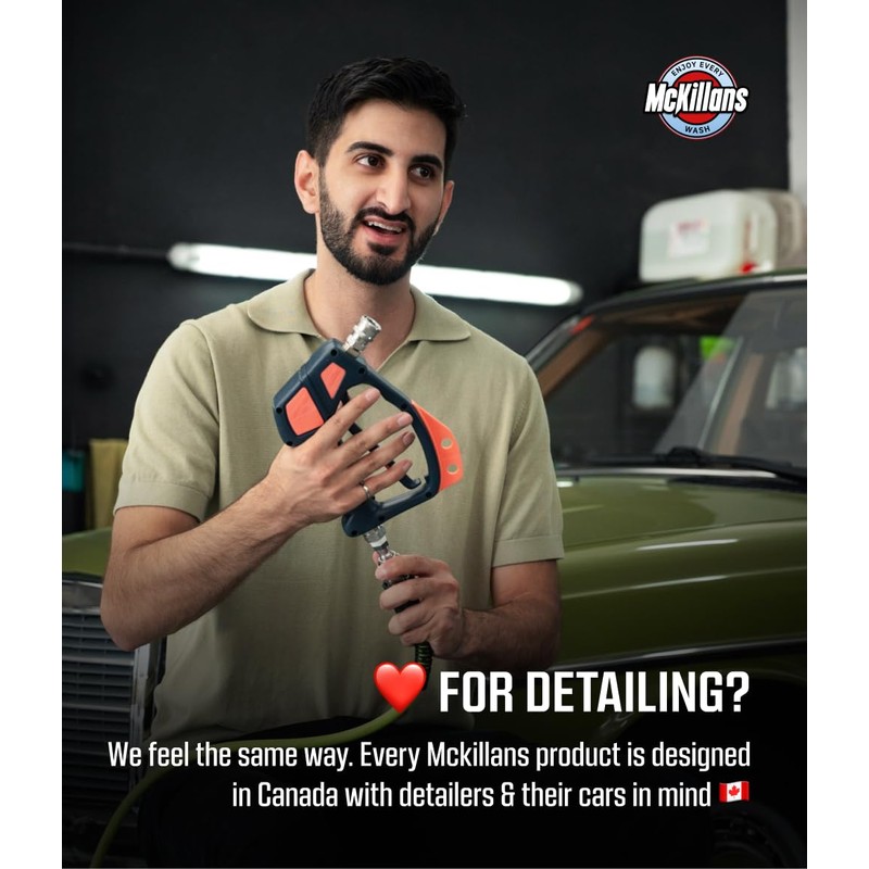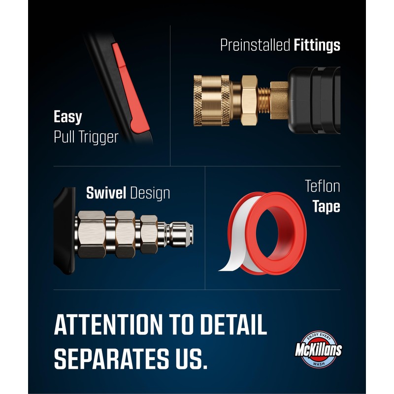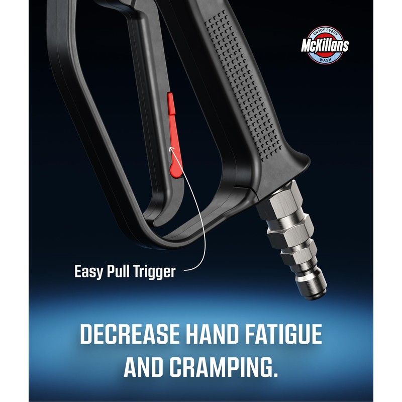 •  Made for Detailers: The McKillans Pressure Washer Gun is the perfect upgrade for your power washer. The integrated swivel helps save you time by keeping your hose tangle free. The small body design makes the gun easy to handle and maneuver. Stop using the long, leaky, and cheap stock gun that comes with your pressure washer, and upgrade to a quality gun. The small design makes it perfect to use with the foam cannon!
