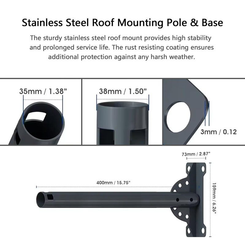 - 【Upgraded Stainless Steel Tube & Mount + Engineering-Grade ASA Plastic Pipe Adapter】Stainless steel ensures rust resistance, while the ASA plastic pipe adapter maintains signal integrity. Say goodbye to concerns about rust and aging issues, as our upgraded materials offer extended durability in all weather conditions.