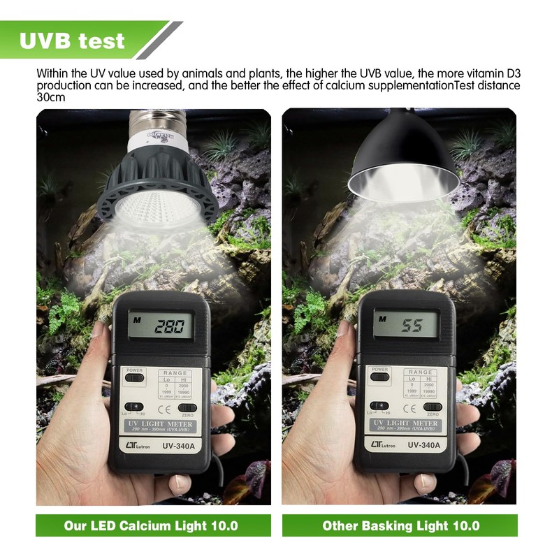 Within the UV value used by animals and plants, the higher the UV value, the more it can increase the production of vitamin D3, and the better the effect of calcium supplementation