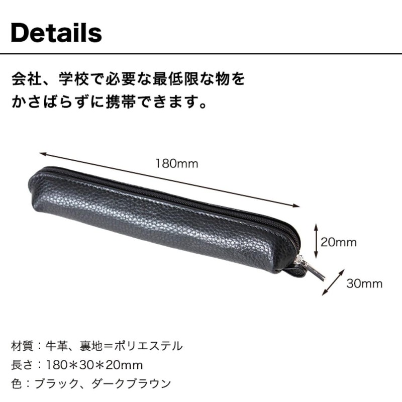 MCN003 Genuine Leather Slim Pencil Case Slim Compact Simple Business People Cowhide Grain Leather, Black, Minimalist