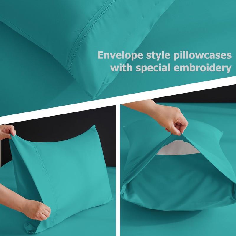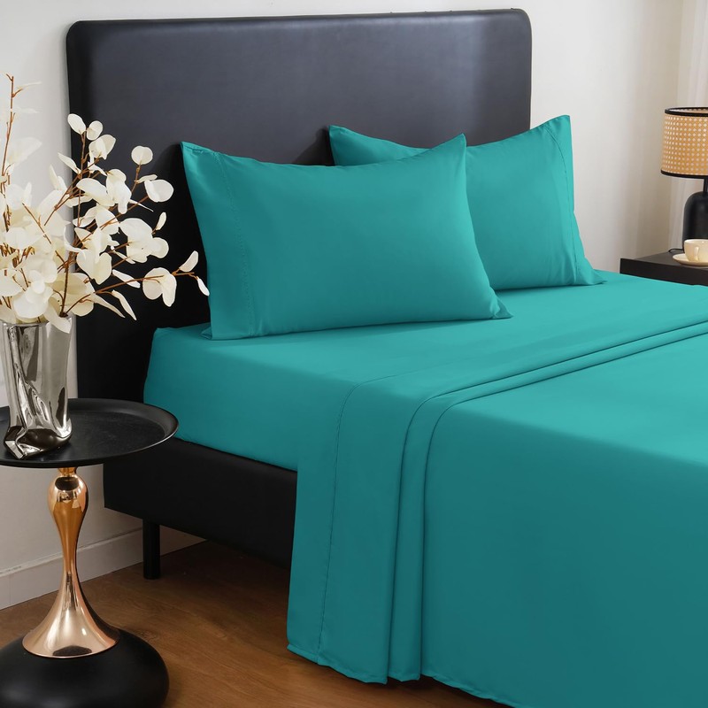 • COMPLETE BEDDING SET - Reconfigure your room with MCO's Twin sheet set. The 3-piece set includes 1 x flat sheet (66"x96"), 1 x fitted sheet (39"x75") and 1 matching pillowcases (20"x30"). The Teal color brings an elegant touch to your room.