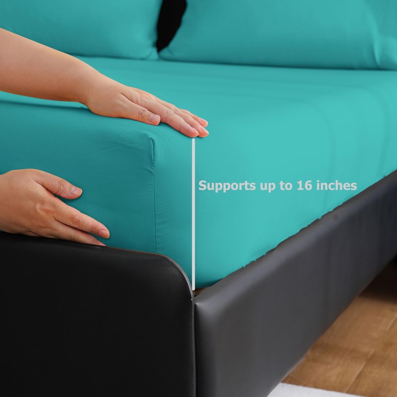 The fitted sheet is 16 inches deep pocket with all around elastic design. No matter traditionial mattress or memory foam mattress, the fitted sheet will still do its job.
