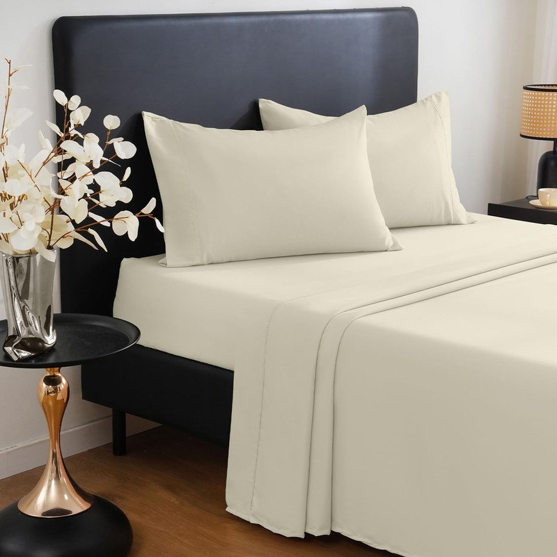 - COOLING AND BREATHABLE COMFORT - Enhance your sleep experience with our superior bedding set. Light and breathable, our sheets are made to keep you cool and invigorated. The sheets' natural temperature adjustment and moisture-absorbing features build an oasis of comfort for a peaceful night's sleep.
