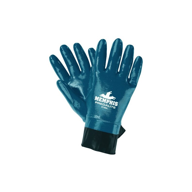 MCR Safety 9786S Predalite Nitrile Rubber Fully Coated Gloves with PVC Safety Cuffs, Smooth, Blue/White, Small, 1-Pair