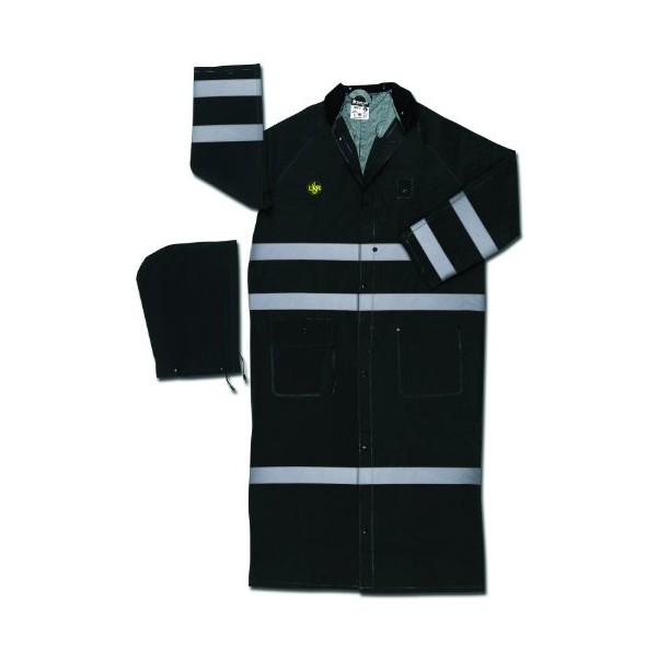 MCR Safety FR267CX2 60-Inch Classic Plus PVC/Polyester Flame Resistant Ridercoat with Detached Hood, Black, 2X-Large