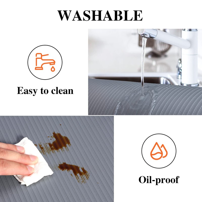 • 【EASY TO CLEAN】: Washable Kitchen cabinet liners for shelves help to protect your cabinets shelves and drawers from wetting, accumulating stains and dirt. you can easily wash any stains with water or neutral soap and this shelf liner doesn't leave any stain marks and dry quickly.
