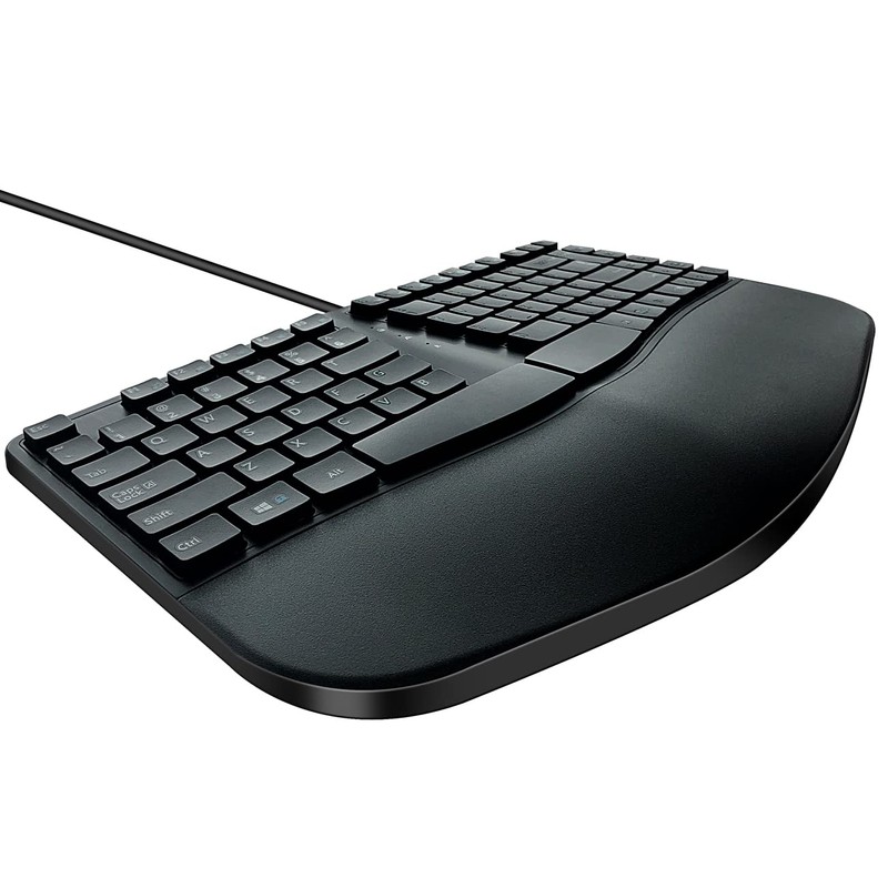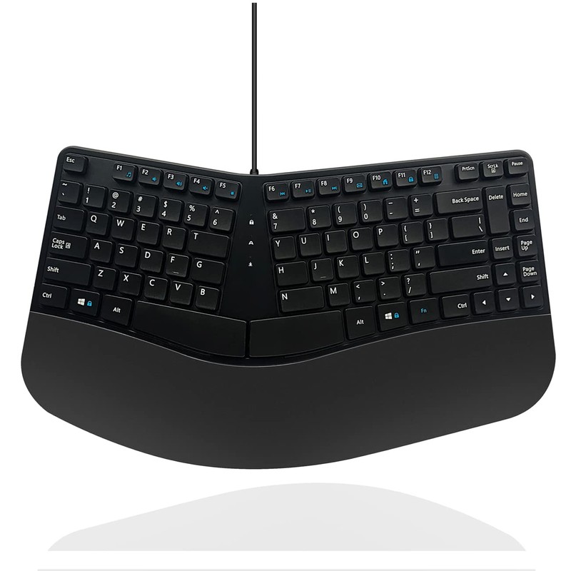 - Split Key Design - Encourages natural position of hands, wrists and forearms for maximum comfort. Work all day, with reduced risk of fatigue and injury, on our Ergonomist-approved design.